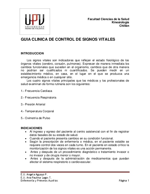 Pdf Facultad Ciencias De La Salud Kinesiologia Chillan Guia Clinica De Control De Signos Vitales Natanael Flores Academia Edu