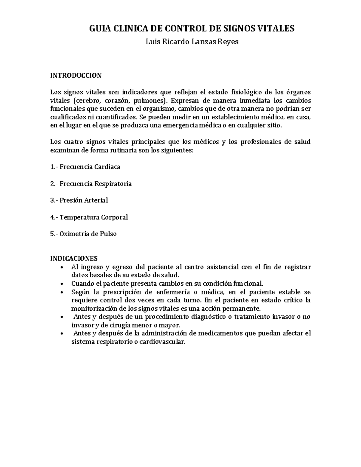 Control De Signos Vitales Guia Clinica De Control De Signos Vitales Luis Ricardo Lanzas Reyes Studocu