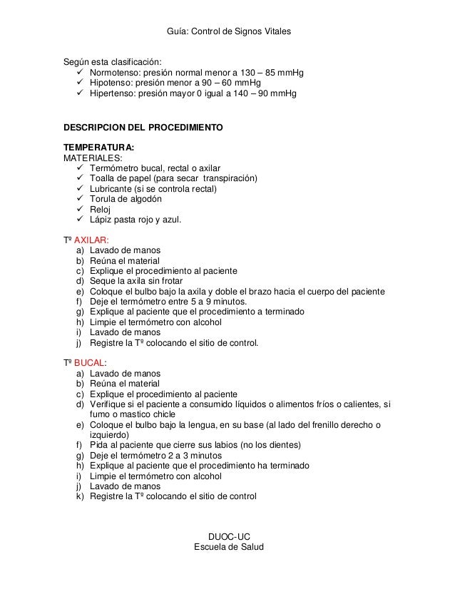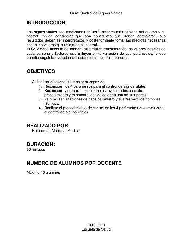Guia Control De Signos Vitales Duoc Uc Escuela De