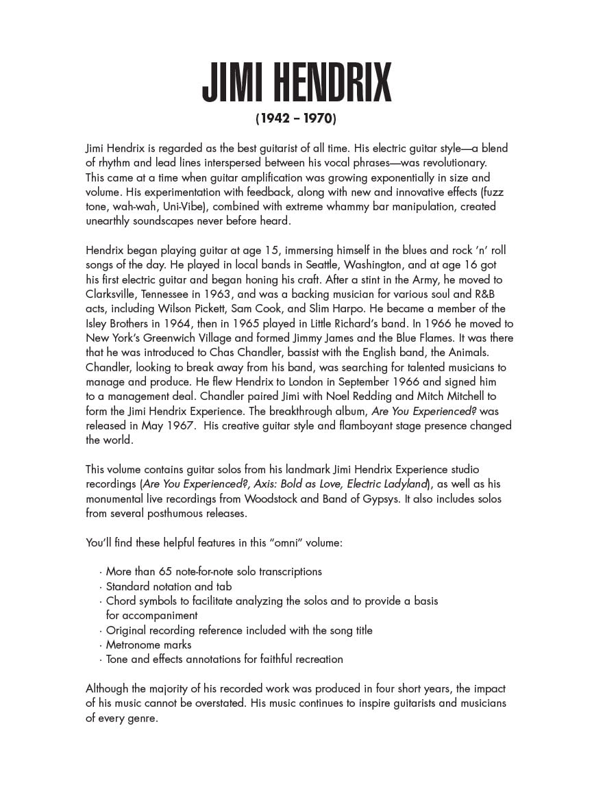 Jimi Hendrix Omnibook By Jimi Hendrix Sheet Music