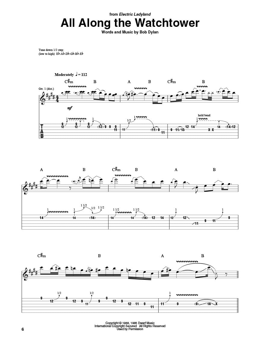 Hendrix All Along The Watchtower Sheet Music For Bass Tablature Bass Guitar
