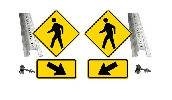 Pedestrian Crosswalk Kit 2 W11 2 Pedestrian Crossing Signs 24x24 2 W16 7p Arrow Signs 24x12 2 8 Ft Posts 4 Pairs Of Hardware 3m High Intensity Prismatic Reflective Rust Free Aluminum Neon Signs Amazon Com